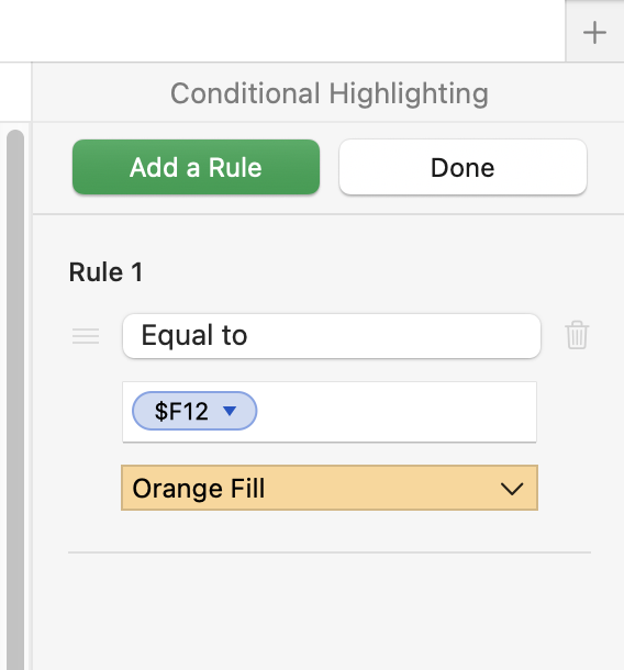 Conditional Highlighting rules compare the content of a cell with another value. The 'other value' may be written into the rule, or may be contained in a separate cell.