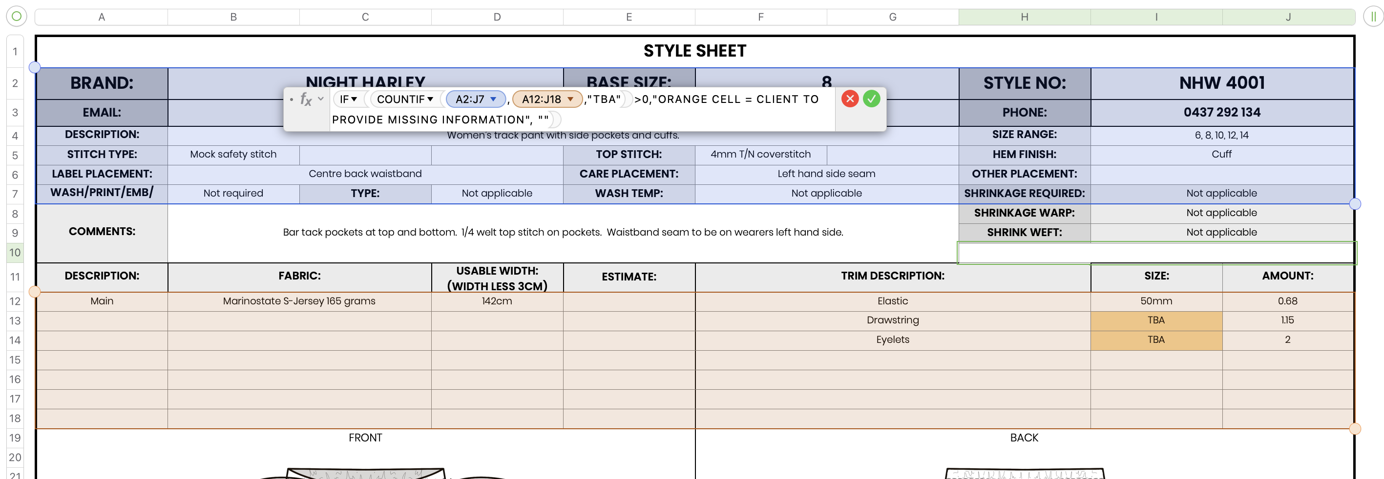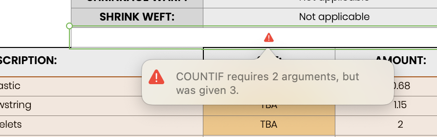 Adding the revised formula, shown at the bottom of the screen shot below, to cell G10 shows the 'orange' message when there are cells in the selected area containing TBA.