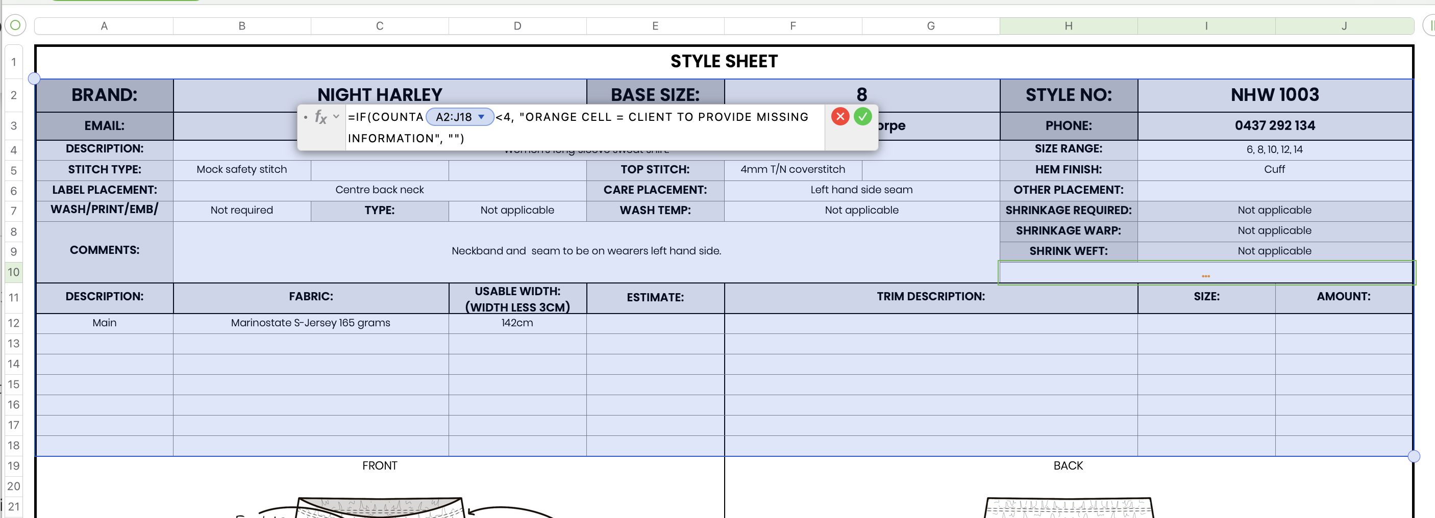 In the example shown in your post, all four of the cells contain text: "Jersey Cotton" and "157cm" in row 12, and "TBA" and "TBA" in row 13. COUNTA will count all four of those cells and return 4, and the formula will place a null string ( "" ) in G10, making that cell appear 'empty'