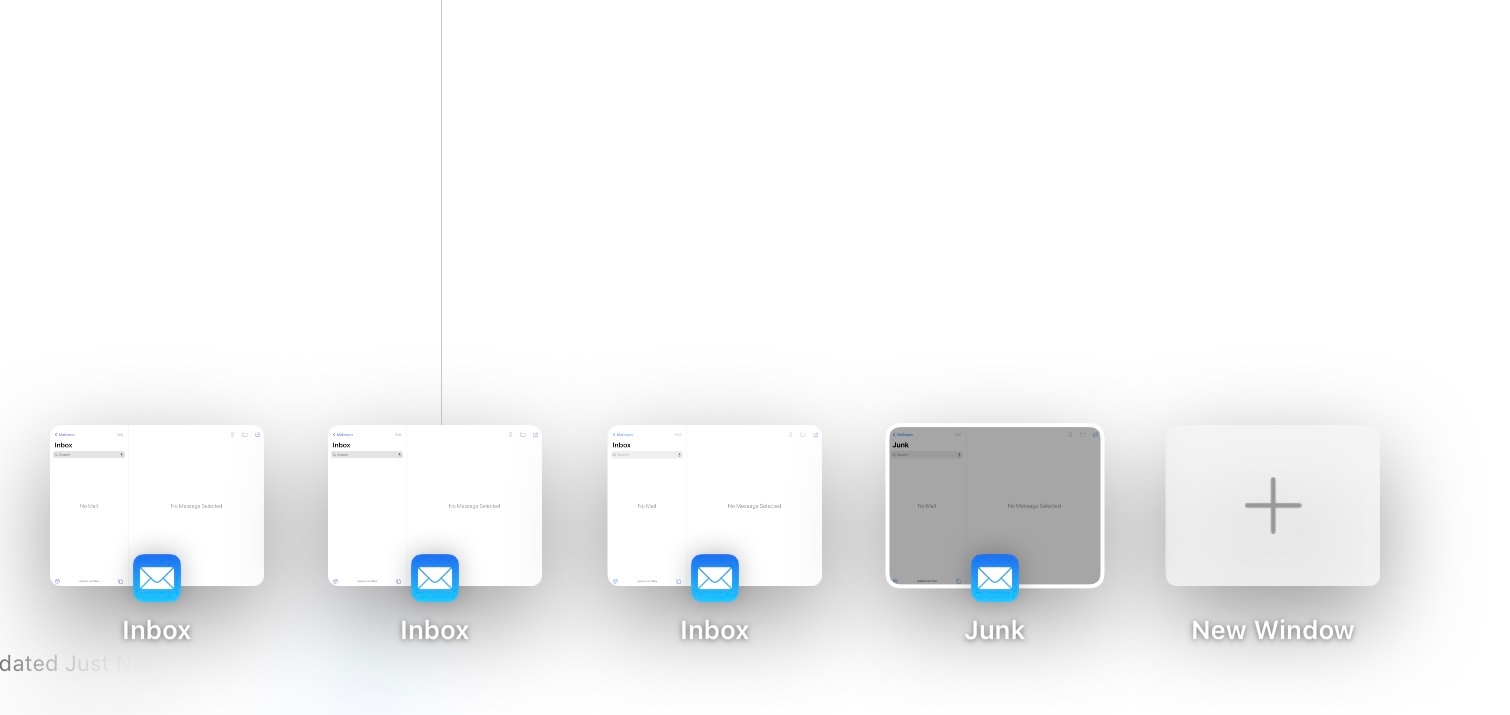 When you switch to an app that has multiple windows open, the bottom of your iPad screen shows a shelf containing thumbnails of all the app's windows.