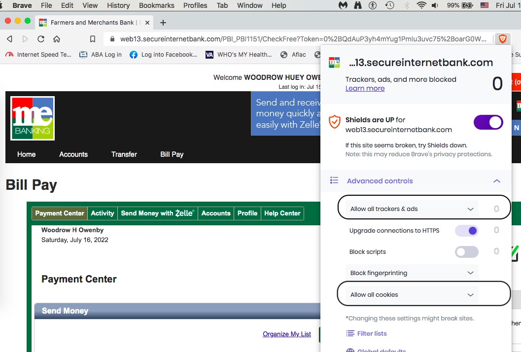I'm using BRAVE or Chrome for Banking.
