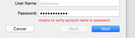 It appears you have Automatic set for your user name, make sure and confirm that the email address is the correct address for your account: Add or delete calendar accounts on Mac - Apple Support