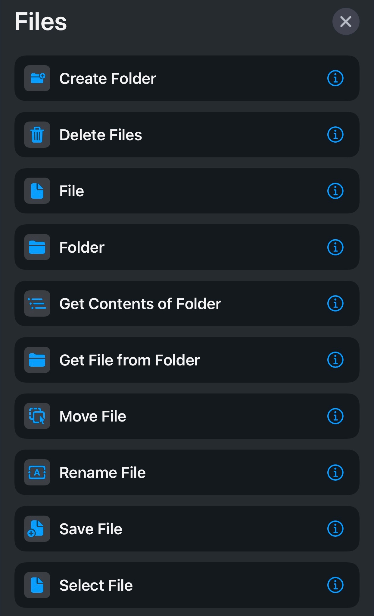 Martin ~ A custom shortcut in Apple's Shortcuts app may do what you want. It has several File actions: