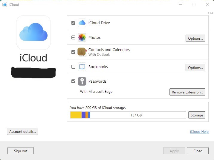 Once again, they (Apple) removed the Feature of Mail, Contact, Calendar Sync with Icloud Control Panel. It only goes with Contacts, Calendar via Check/Uncheck.