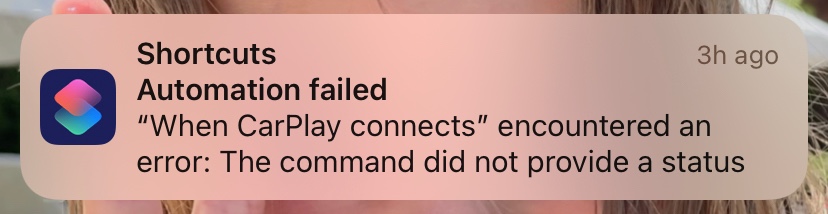 Automation failed "When CarPlay connects" encountered an error: The command did not provide a status.