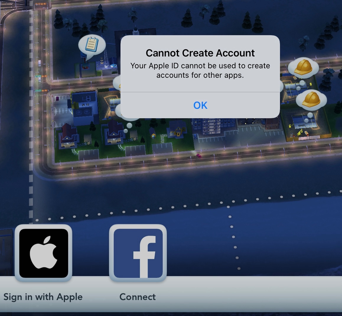 I keep trying to log in to one game on my iPad with, Login with apple ID, and it says “Apple ID cannot be used to login with other apps.” Can anyone tell me how to get past this?