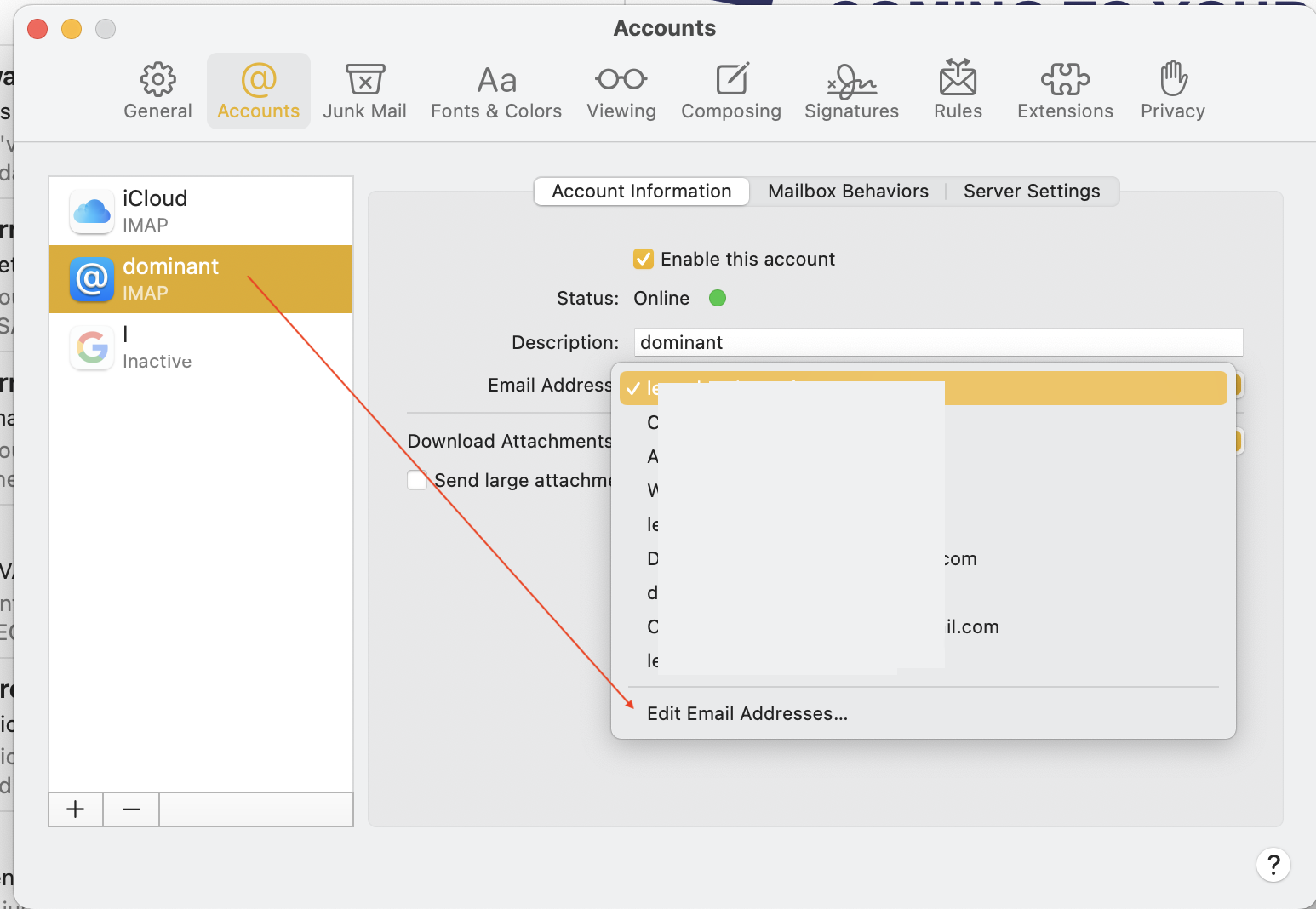 Each time I try to send a new email, I finish typing the TO address and if I hit either RETURN or TAB, the FROM address automatically changes, at that moment, to another email account of mine that is totally unrelated and sometimes even a different business.