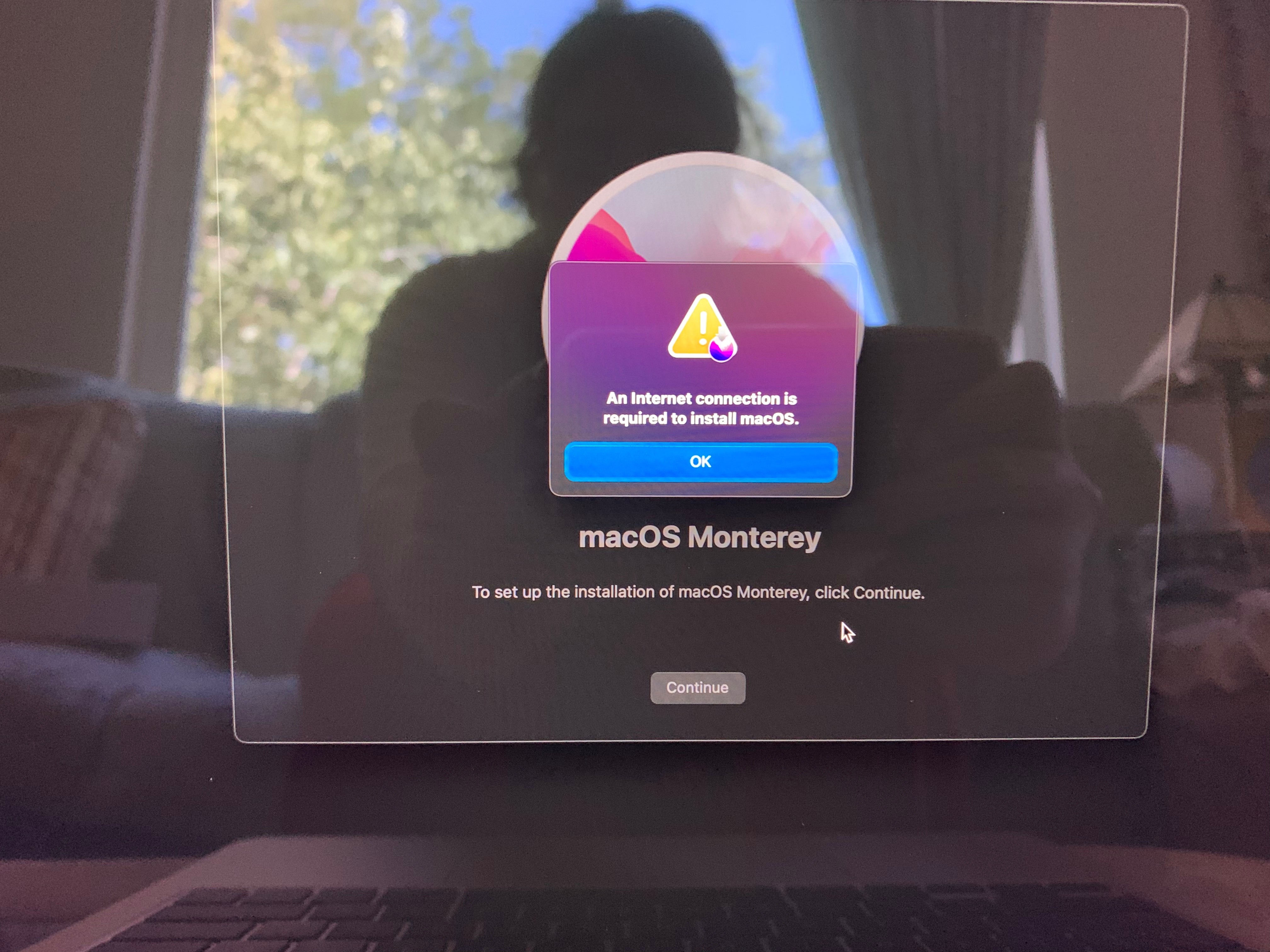 An internet connection is required to install macOS. This error keeps popping up when I try to reinstall macOS