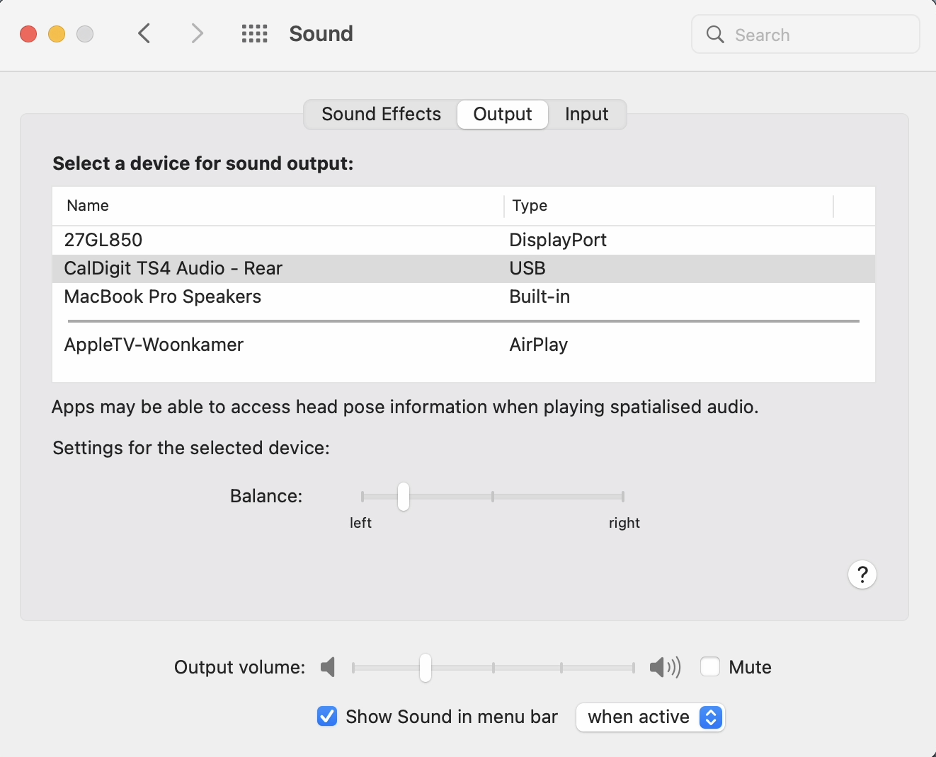 Caldigit TS4 audio balance shifts to left