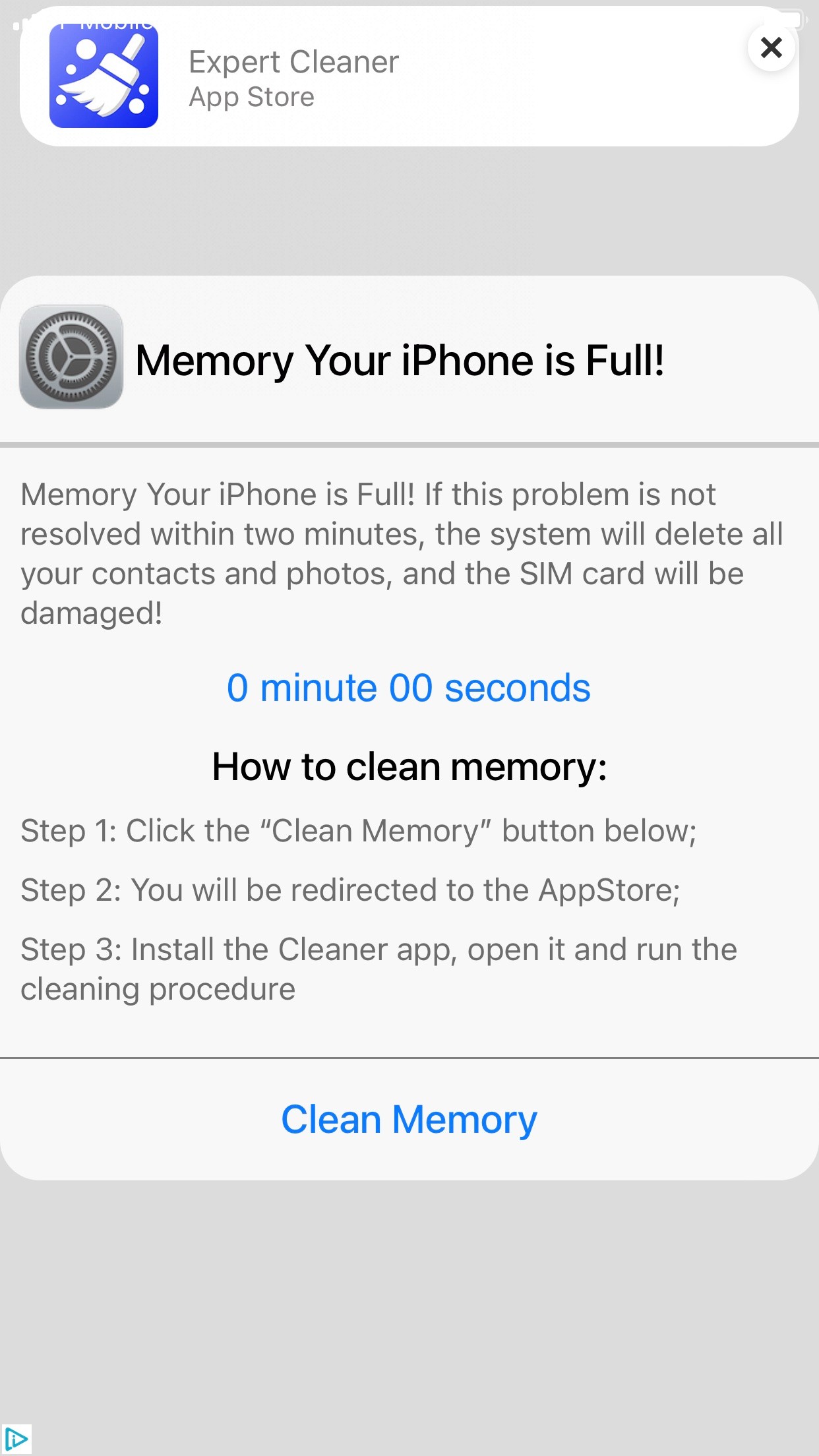 If you received a popup alert or warning or anything for that matter alleging your iPhone needs to be "cleaned", it's a scam.