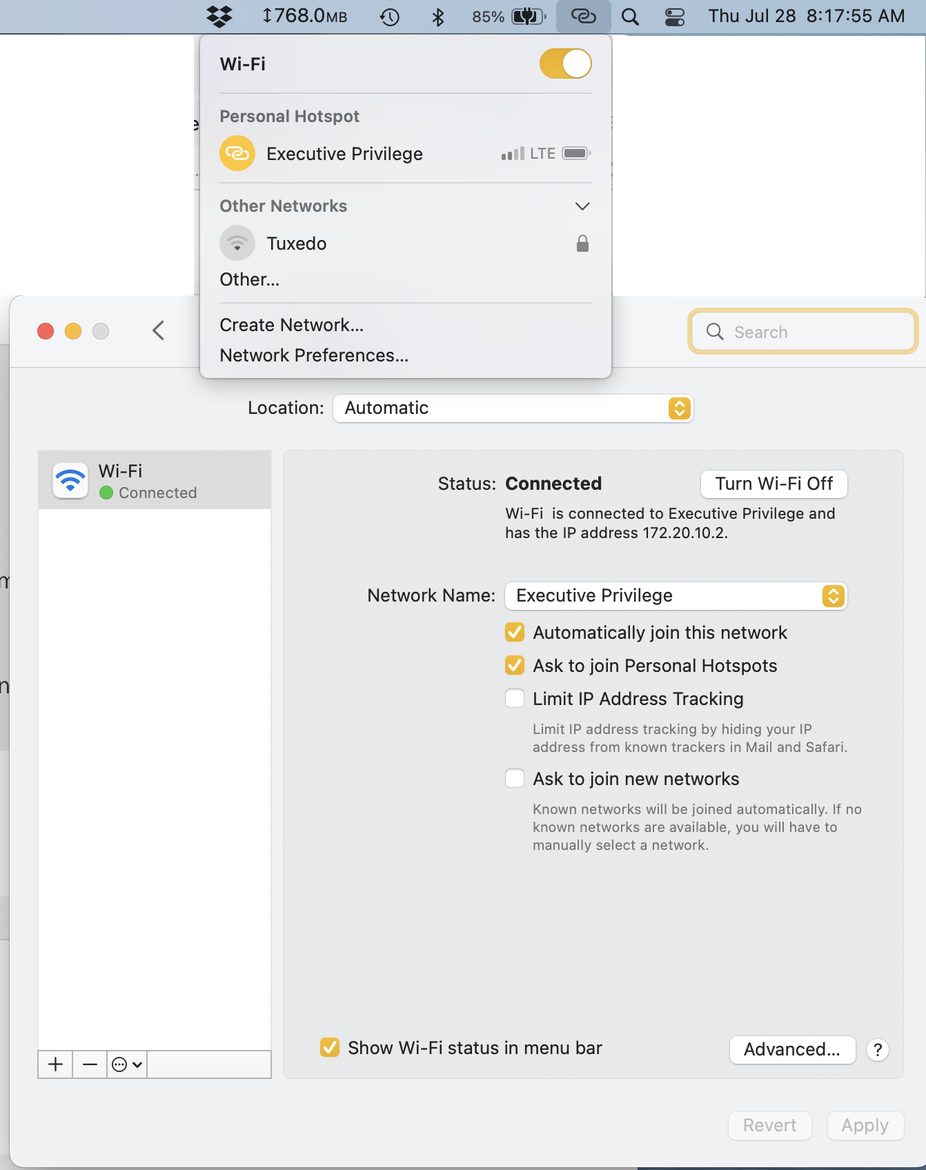 The WiFi list should have Personal HotSpot listed above all WiFi connections, now it never appears. (macOS Catalina 10.15.7, iPhone 13 Pro Max iOS 15.5)