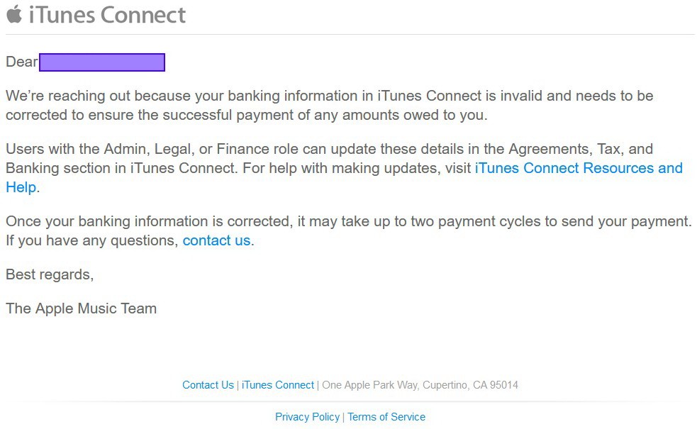 Pretty sophisticated but I’ve never heard of iTunes connect and definitely ain’t clicking any links.