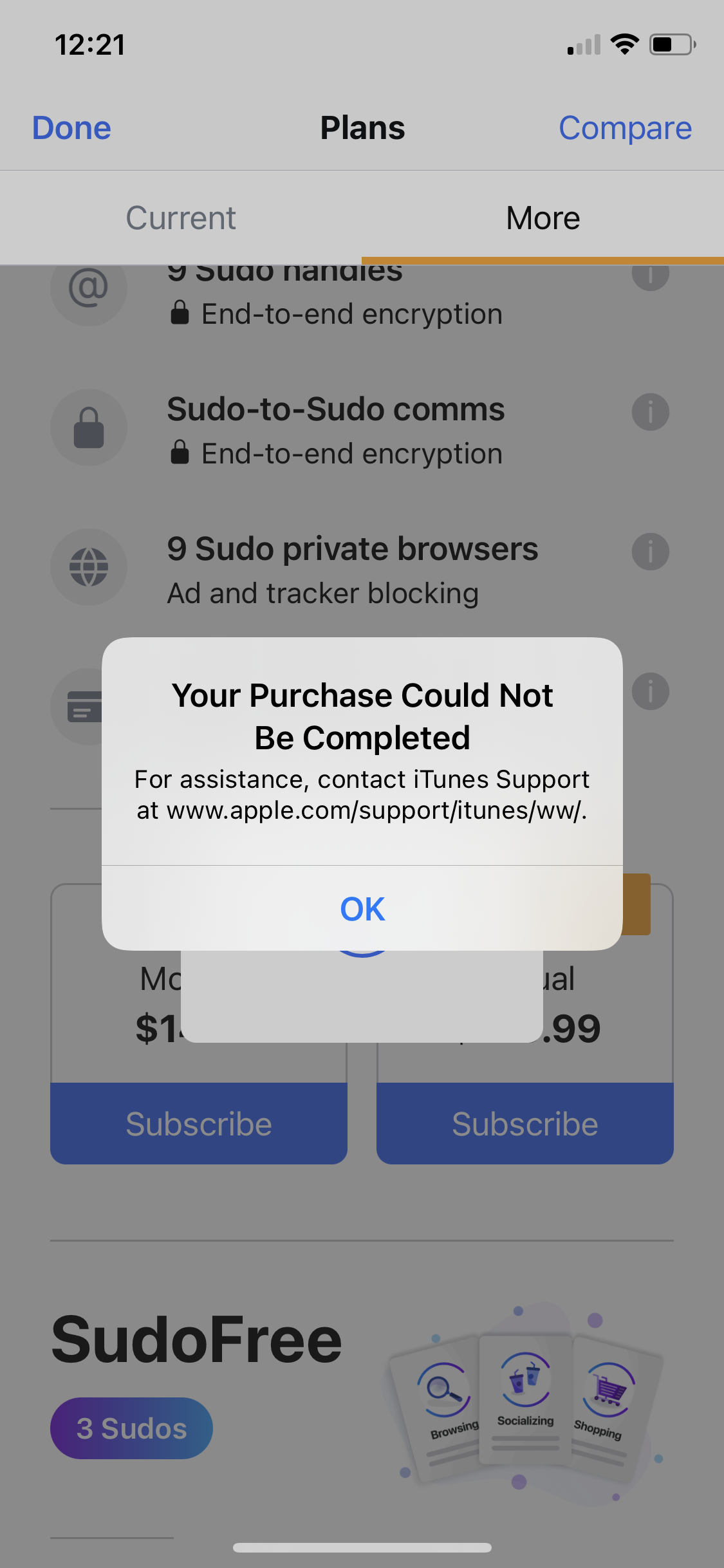 "Can purchase with my iTunes: I try to purchas on my store and I have enough iTunes but yet it keeps saying….. your purchase can’t be completed"