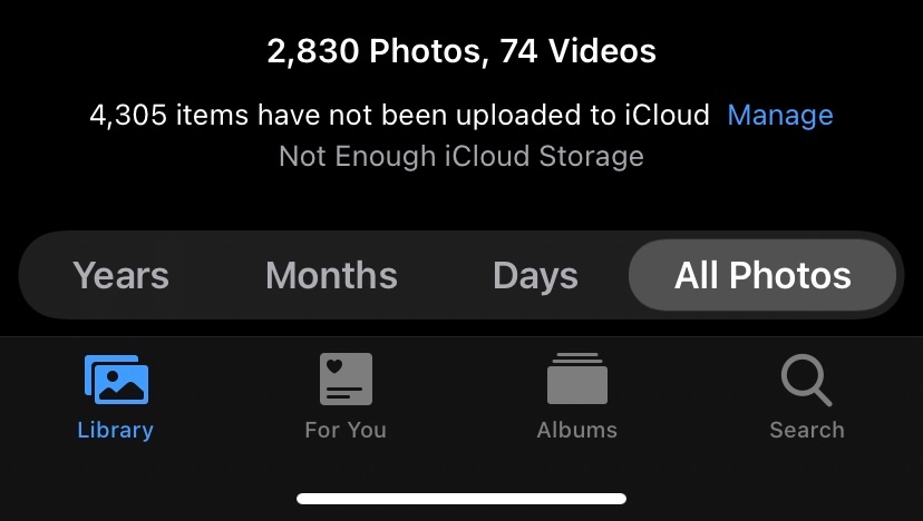 In my general settings it says that I have more than enough storage available. My photos app, says that I am out of storage and won’t back up.