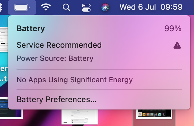 I have an old MacBook Pro from early 2015. It has a problem with the battery; it says battery service is recommended, and the 13inch 2015 Macbook is not yet vintage. I use Mac Big Sur macOS 11.6.8.