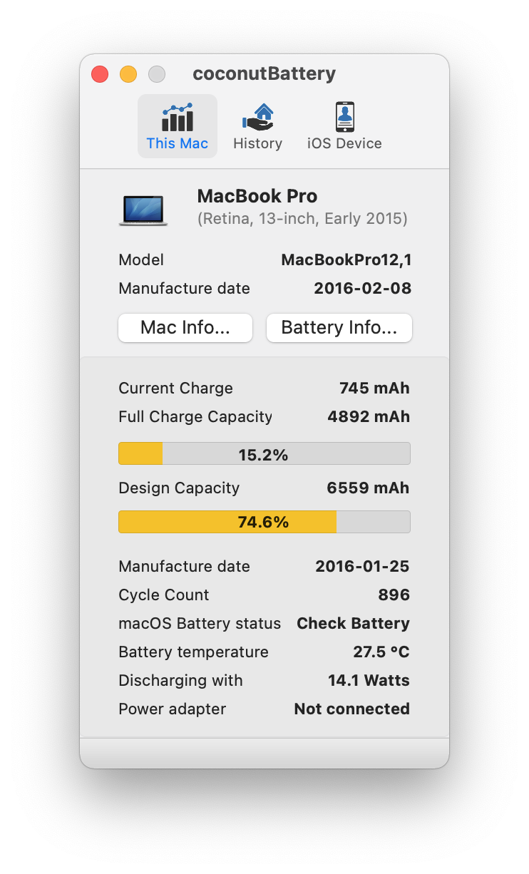 MacBook Pro 13-inch Early 2015 battery service is recommended