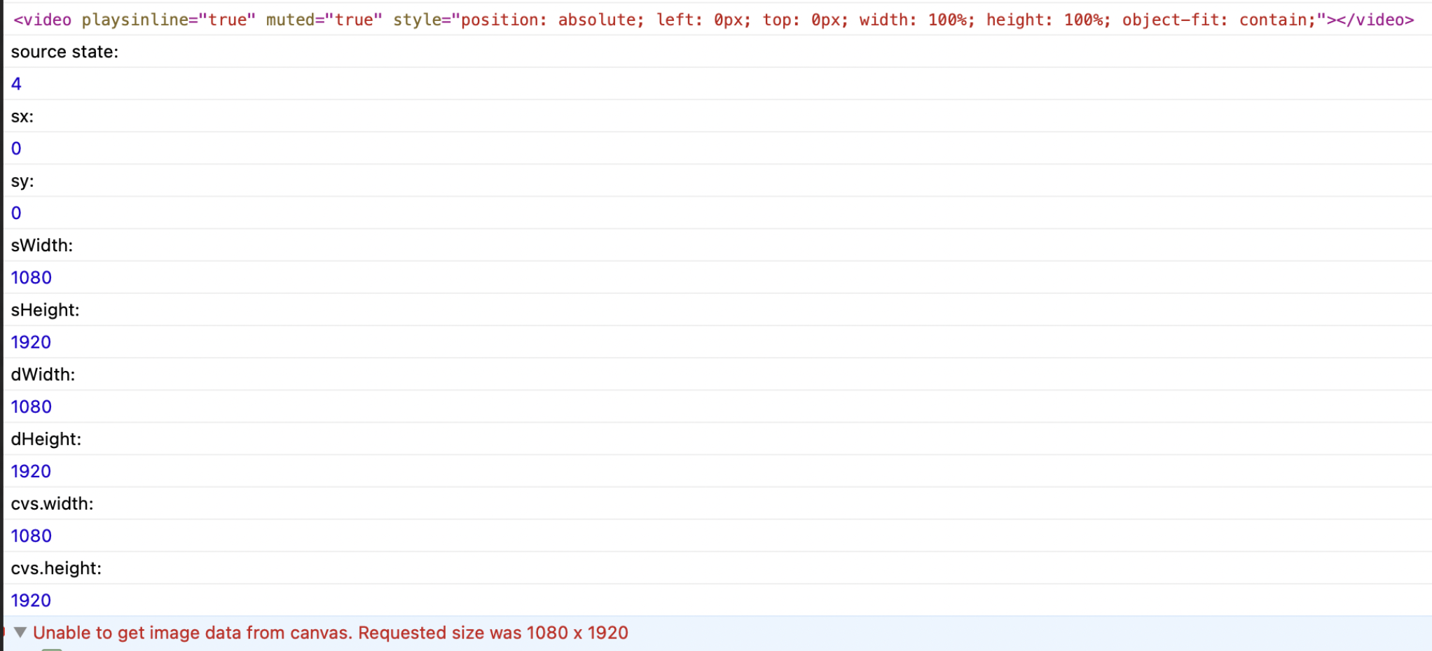 safari occasionally throw error "Unable to get image data from canvas. Requested size was 1080 x 1920"