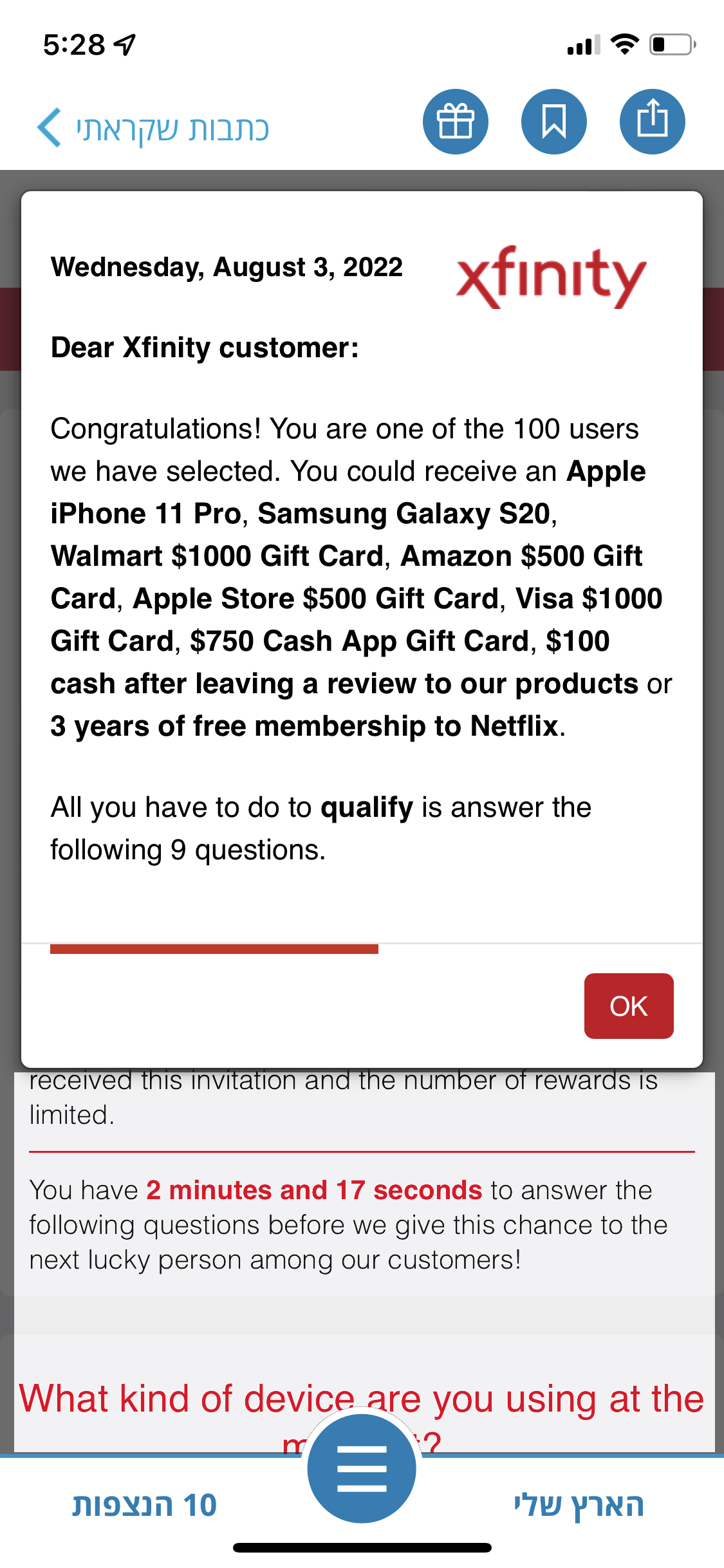 For a few days now, when I'm on this (foreign) newspaper's comments page, occasionally I get this "thing" taking over the screen while making some weird "ping" sound, and the only thing I can do is swipe it aside. This one is "from Xfinity," which is my internet provider, but couple days earlier I got a similar thing from "Google," which I was actually tempted to scroll down to fill up the info (not personal) to realize this is BS.
