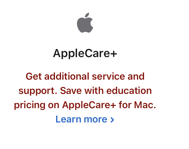 Apple education pricing is valid for select Apple products and not for AppleCare.