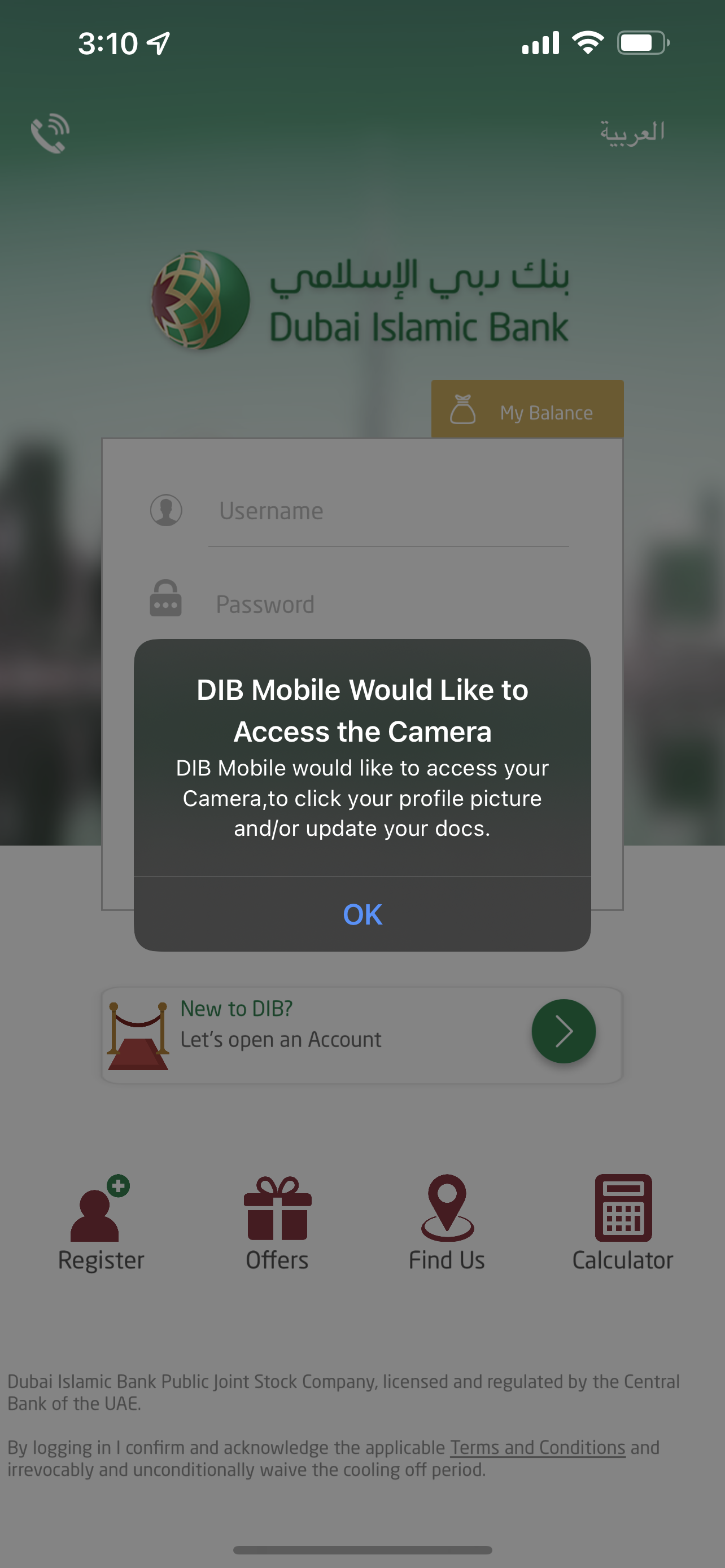 DIB Mobile would like to access vour