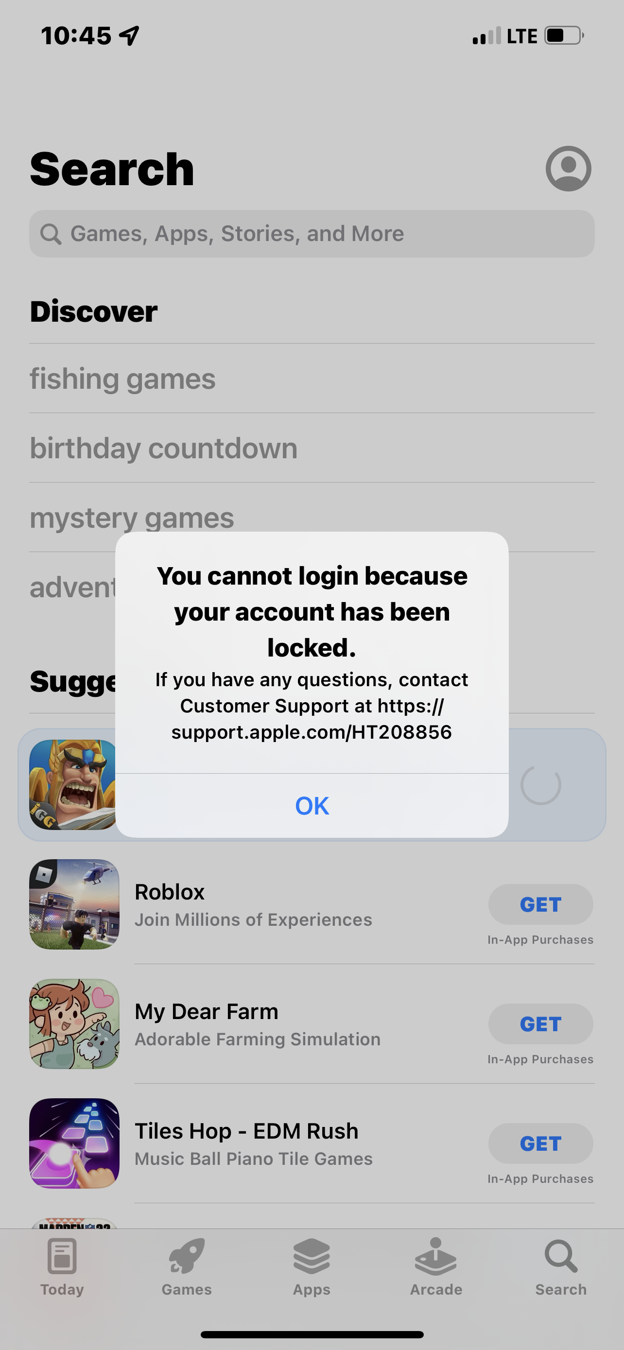 If you see a message that says "Your account has been disabled in the App Store and iTunes," contact Apple Support for help.