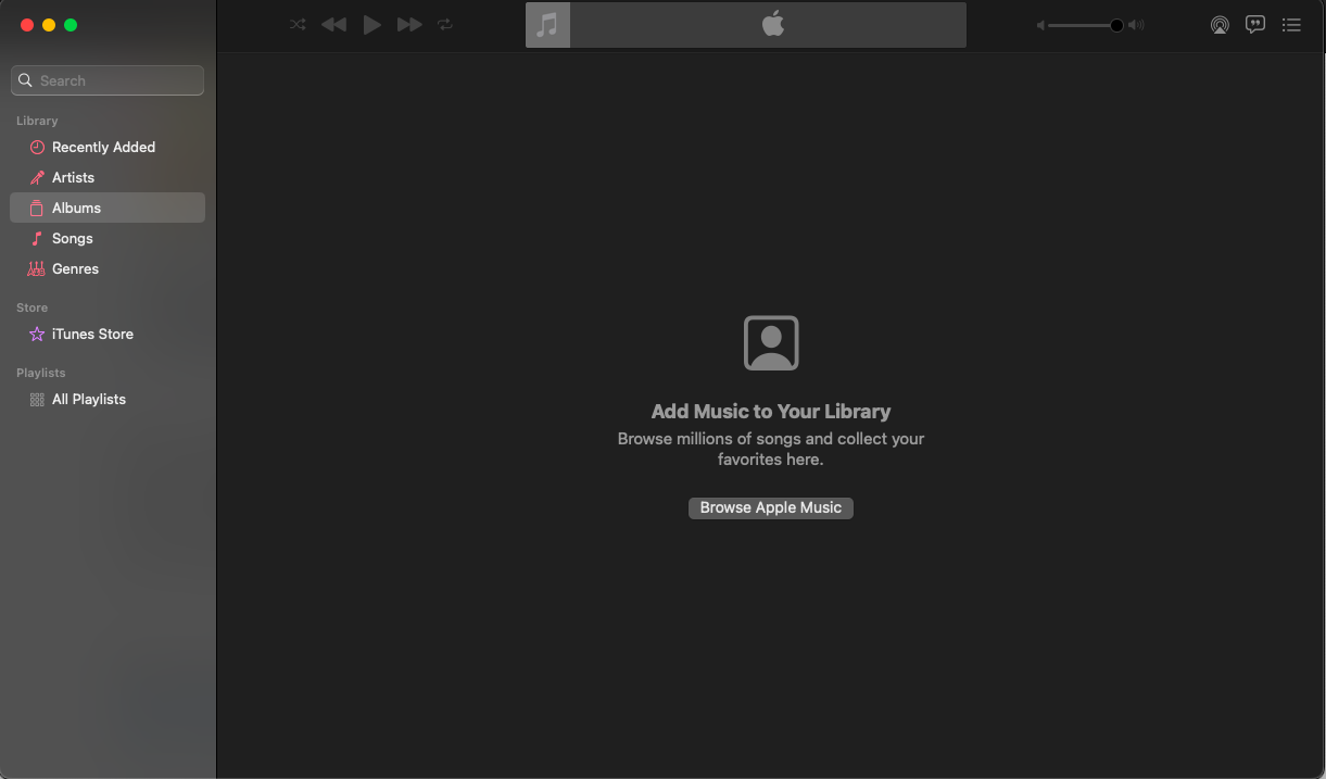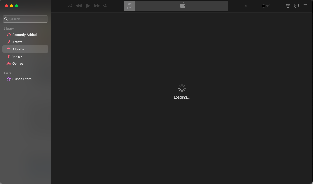 This is what Music looks like on first launch. It can sit here and spin nothing happens