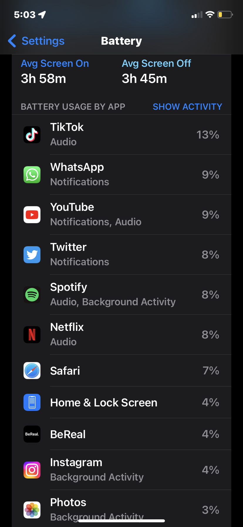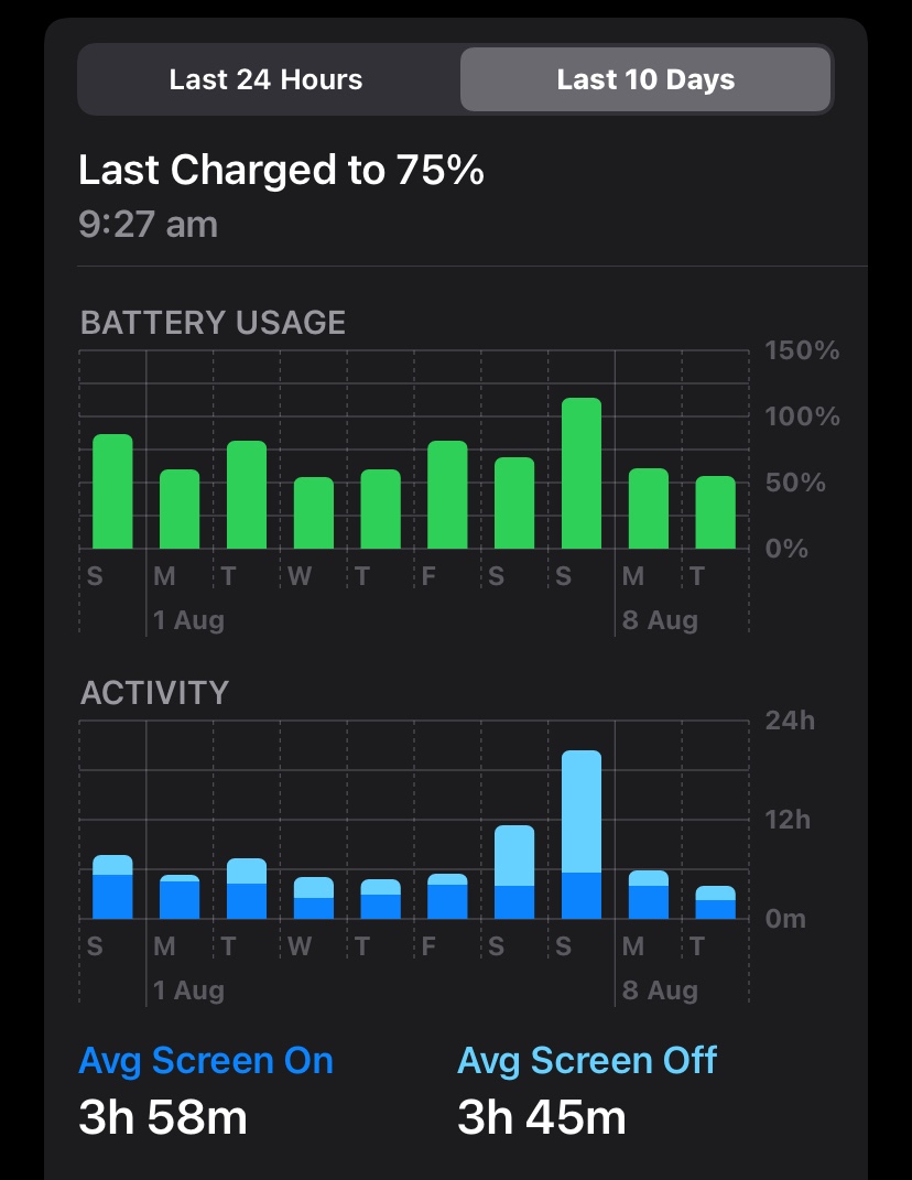 In September, I bought a brand new iPhone 11. I transferred all my data from my iPhone 7. Even since I bought it, the battery drains faster, much much faster, when not on Low Power Mode; I have to have Low Power Mode on all the time when not charging or else it doesn’t last long enough. Low Power Mode shouldn’t damage the battery (aka reducing Battery Health) but the Battery Health was 100% in September and, 11 months later, it’s now on 87%. Why is this dropping so fast? Why does my battery drain when not on Low Power Mode? In the last 10 days, my average ‘Screen On’ time (found in settings > battery) is 4 hours with 3hr 45m ‘Screen Off’ time. When I’m at school, I’ve seen an average ‘Screen On’ time around 5 or so hours, which isn’t bad, but also isn’t the all day battery life most people get and even isn’t the 11 hours Apple has stated on the product page.