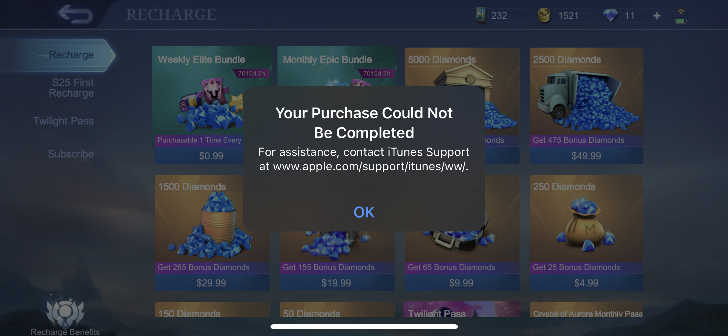 I just redeemed 5$ utunes guft card and cant purchas in my game account (Mobile legends)