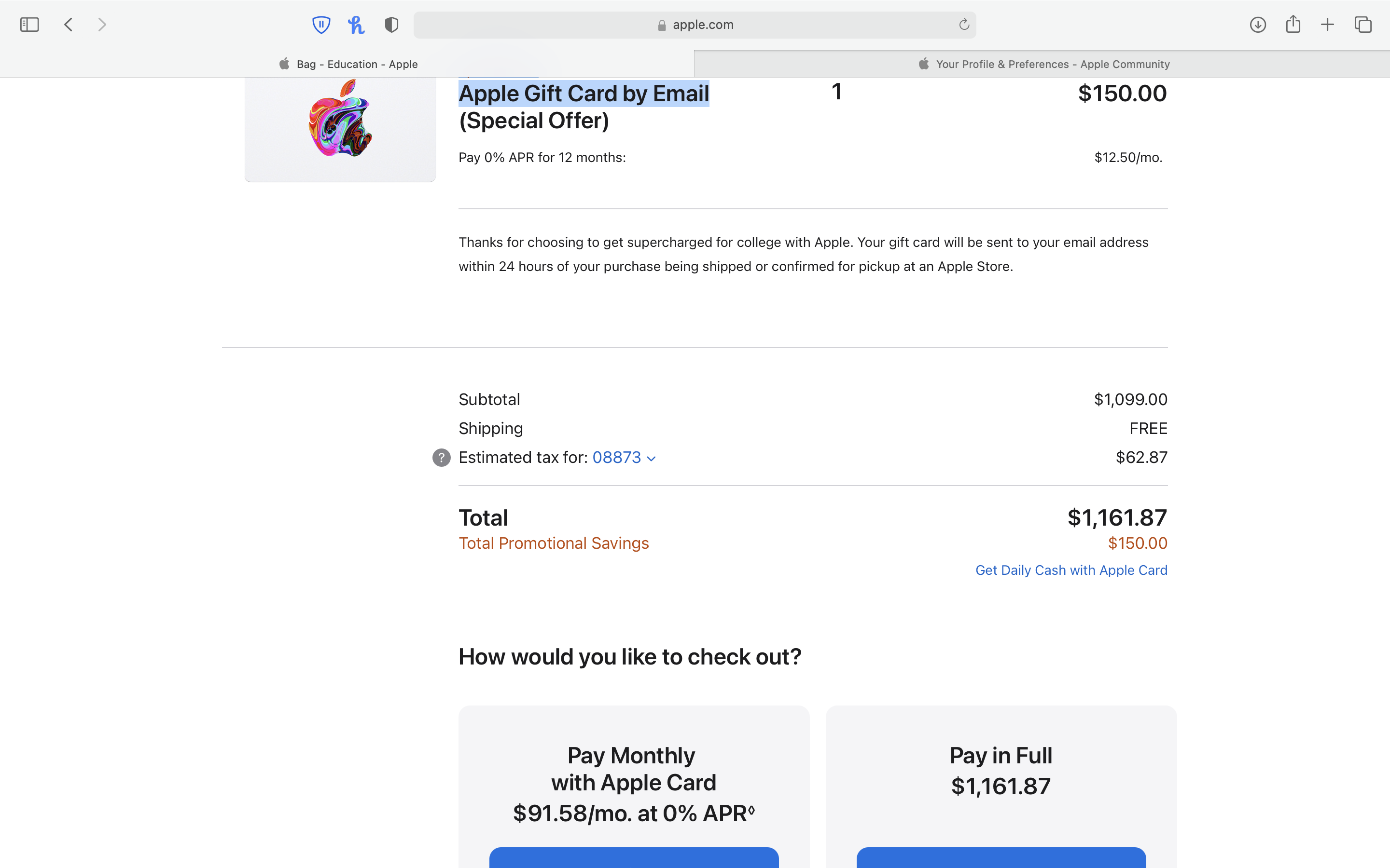 i want to order the macbook air m2 which is 1099, however there is a education offer for 150 usd discount + 150 usd voucher . now when i add that to my cart thru that program it does says promotion price 949 but at the end it still states 1099 + tax . it adds the 150 usd voucher at total