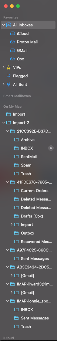Unfortunately, I "thought" I had a Time Machine backup, but it seems it got corrupted in mid backup. Luckily, I had been operating Catalina and the OS from an external SSD bootup, and I still have that intact. Can anyone tell me where & how to retrieve my very organized mailbox and saved message structure from the old external drive and import it to the new mailbox?
