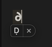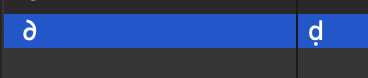 I am attempting to set up a text replacement for Arabic transliteration using the option key. In the replace column, I have 'option+d' and in the right column I am entering the unicode hex for the letter - in this case 'option+1E0D' - after switching keyboard input. It seems to be all set as shown in the picture below: