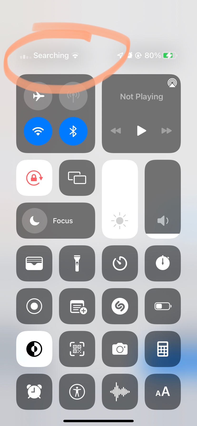 next to my wifi (the three stacked bent bars) is where ny other bars are ment to be but it says searching instead and it doesnt let me turn ny mobile data on?
