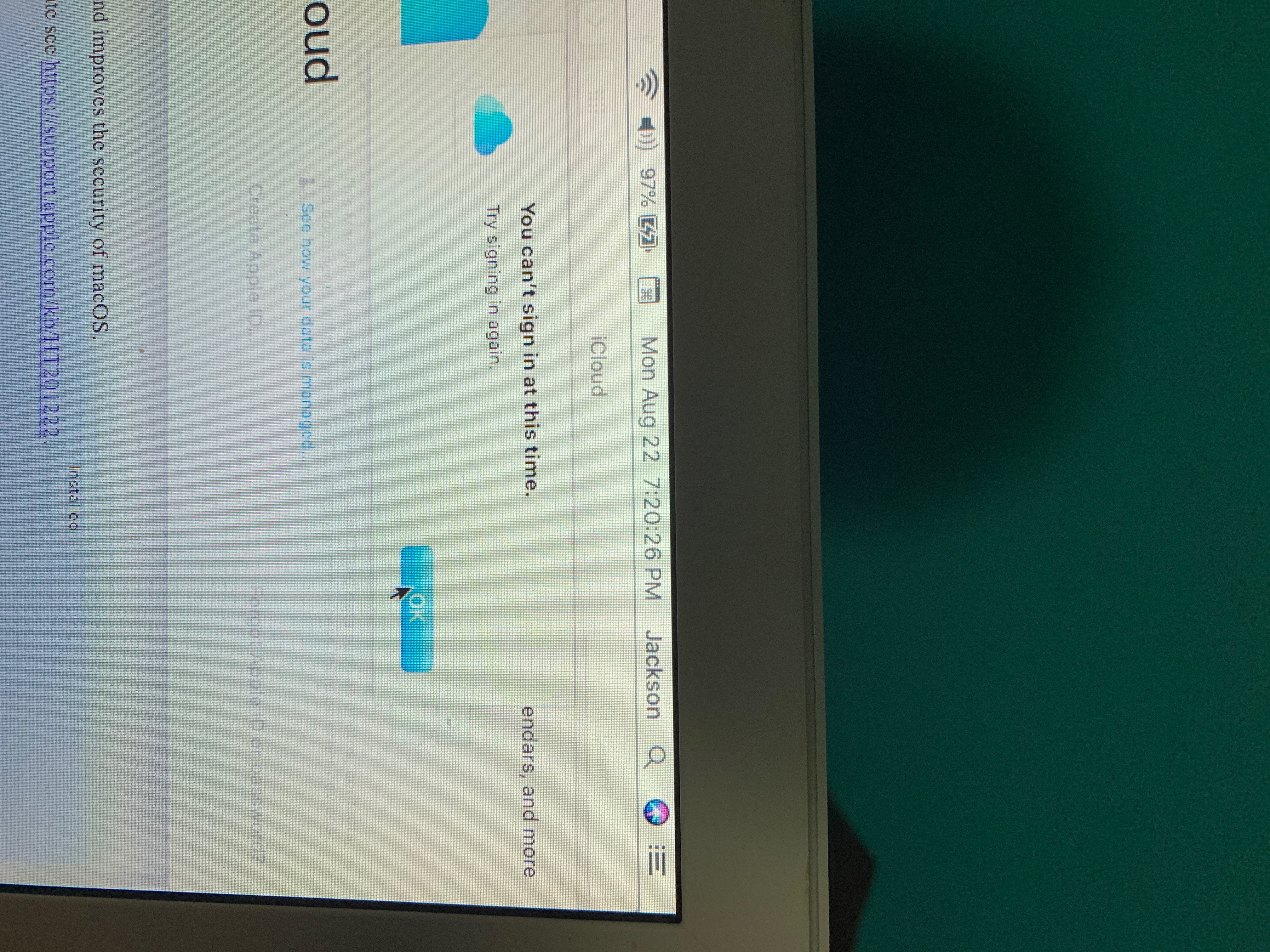 tue last update is the 2020 security update and it wont let me sign in