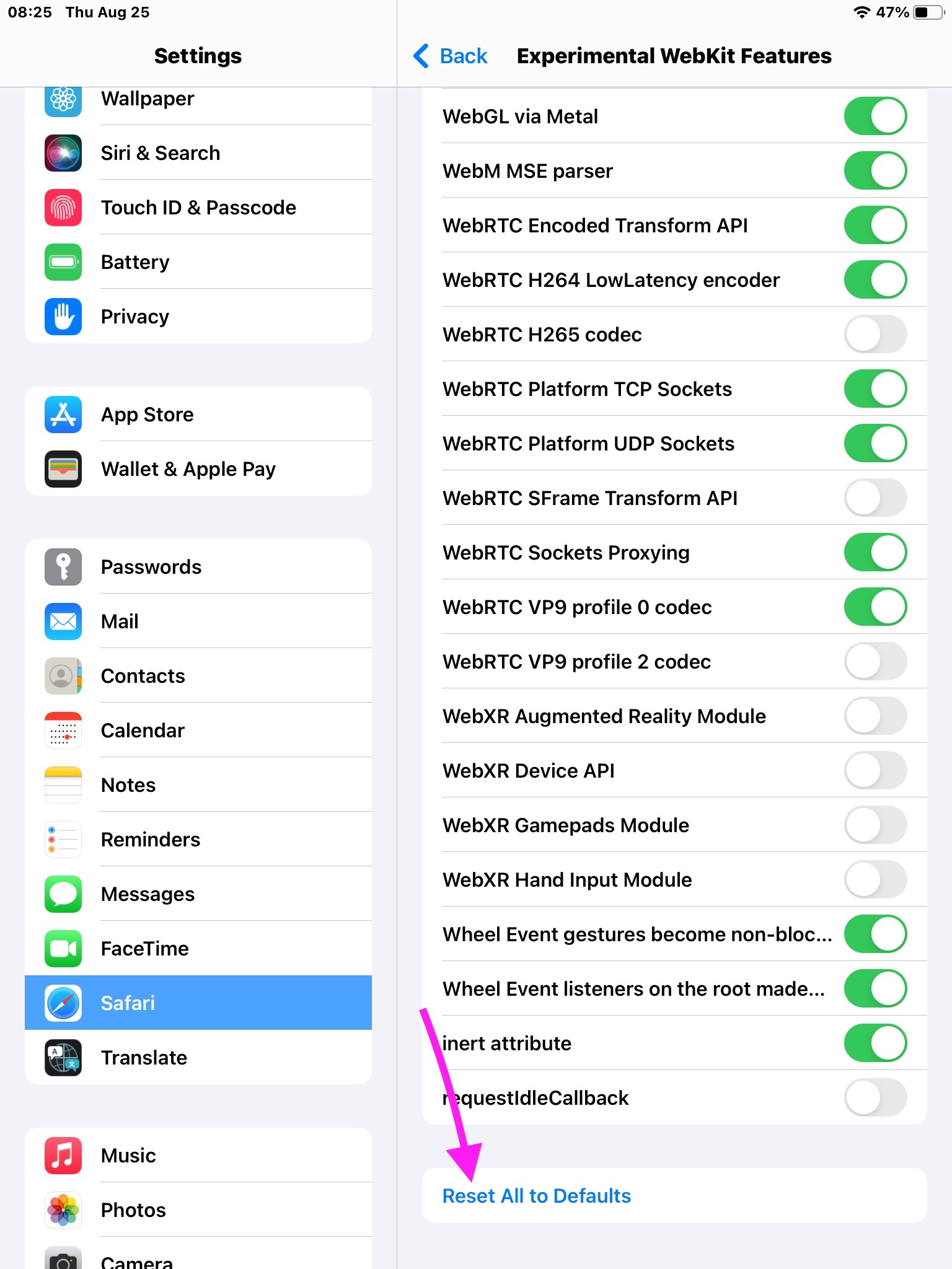 Please note that although there is a reset to default feature in iOS 15.6.1 through Safari, there needs to be increased clarity as to clarity in what each feature toggled or not does. Furthermore, vulnerabilities have been noted in previous posts in the most recent patches of WebKit vulnerabilities.