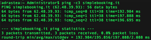 With the Terminal window still open, enter the following command, followed by the return key: ping -c3 simplebooking.it