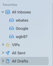 Attached are screenshots of the relevant areas as they are shown in the left side menu. Between 2 and 3 there are quite a number of personal boxes I am using for personal Archives according to subject.