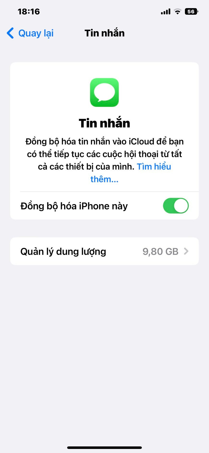 Sao khi khôi phục cài đặc gốc, thì tôi đã bật đồng bộ hóa với Icloud để khôi phục lại tin nhắn nhưng lại không được, trong khi rõ ràng là tôi đã lưu trữ 9,8GB dung lượng tin nhắn trên Icloud. Trước đây tôi cũng đã khôi phục bình thường nhưng đợt này lại phát sinh lỗi *** thế này. Xin cách khắc phục với