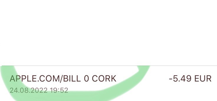 Bill 0 Cork / Apple.Com withdrawal -5.49 €