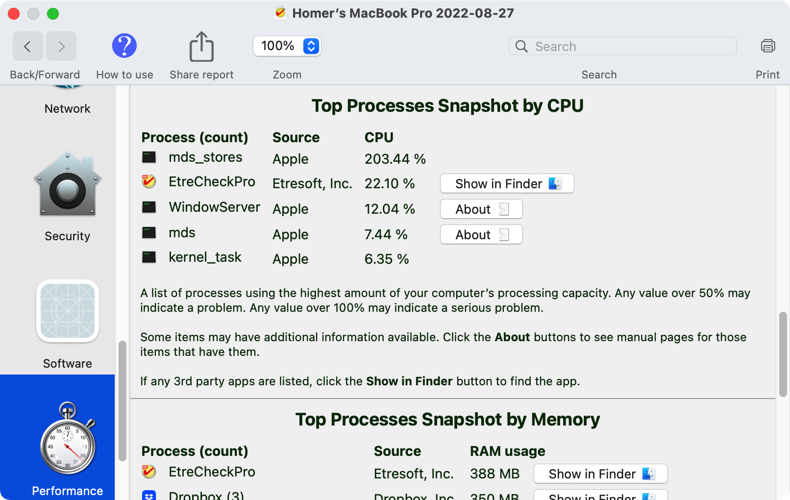 What is Apple's "mds_stores", and how can it be using 203.44% of the CPU?