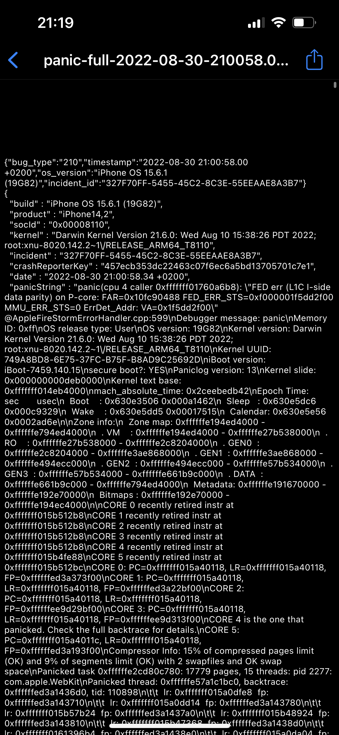 iPhone 13 Pro keeps rebooting - Panic Full report