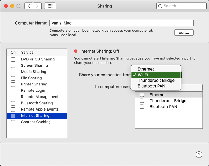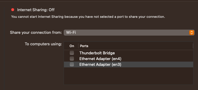 The Sharing Preference will show the details of the sharing service you have selected on the left. If you leave it on "Internet Sharing", that's what you will see.
