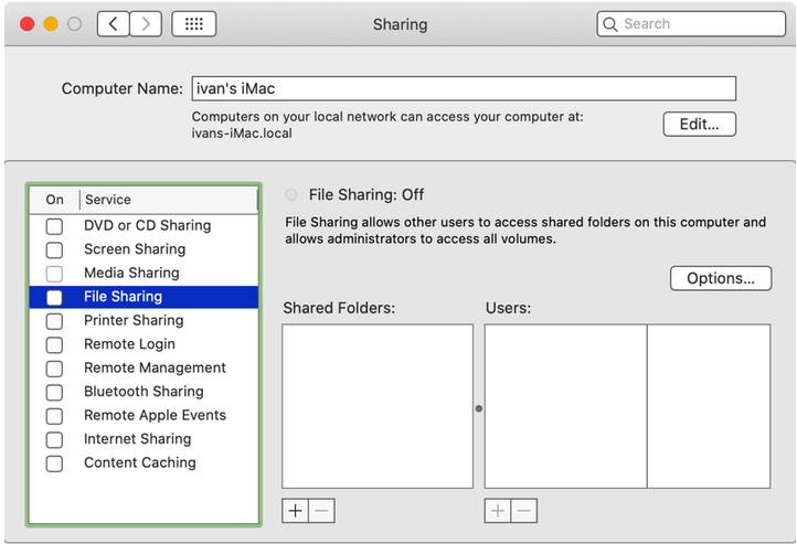 What happens if you select a different Service, like "File Sharing"?