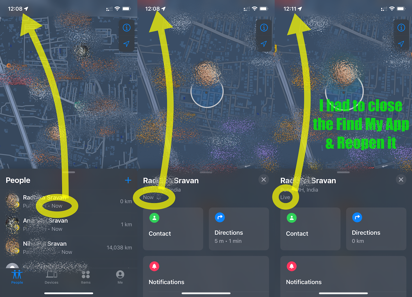 Why doesn't the "live" show on the persons location when find my is active ... it used to show live and show the real-time movement