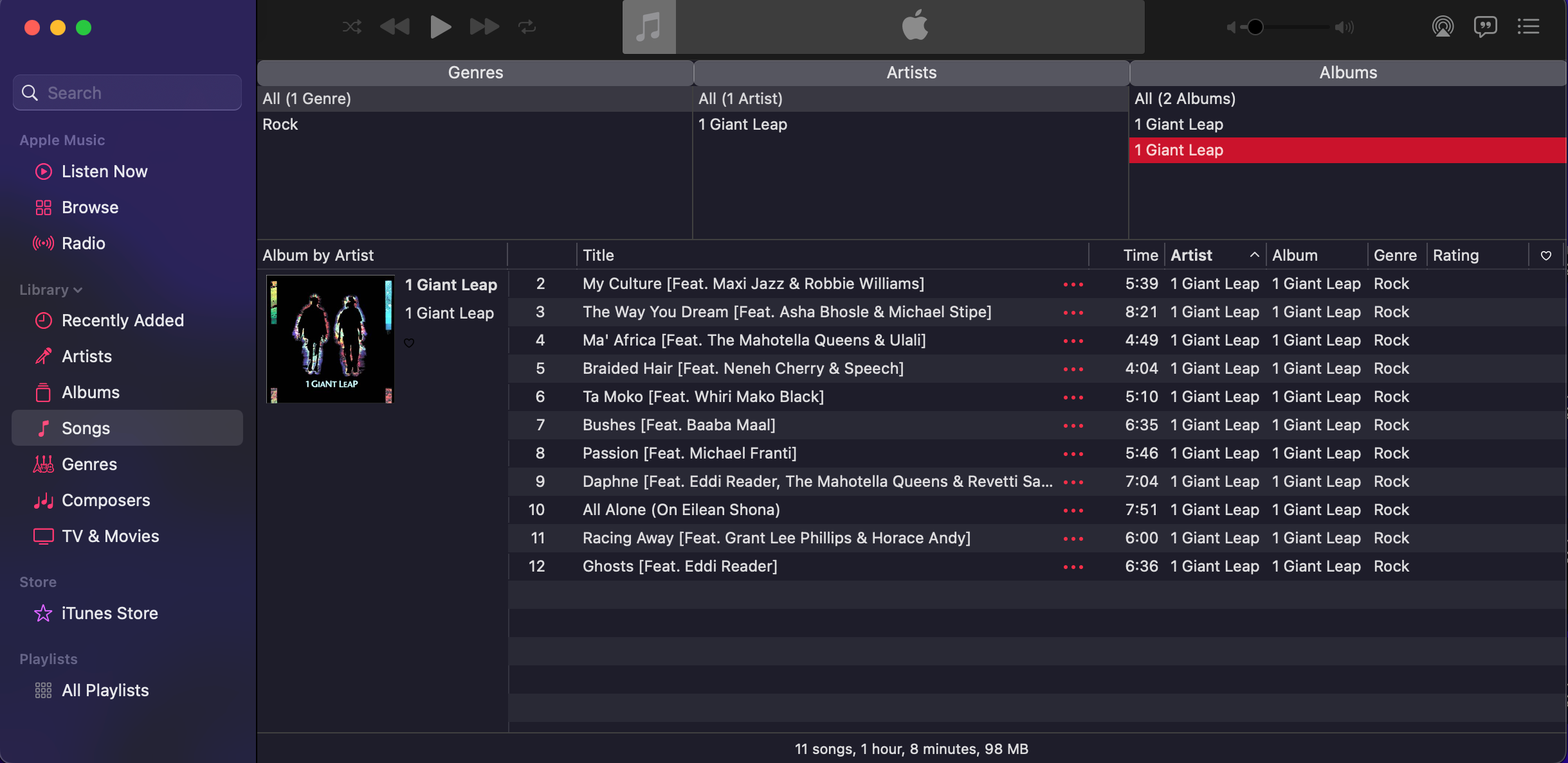 Here the one album is listed twice in the column browser. Previously in iTunes I've used a similar view where artwork is always shown, and when stepping through the albums one by one in the browser there will sometimes be two covers. Like you I was able to merge these together by reapplying some common value. This bug has been probably been present in one form of another for the 15 years I've been posting here. 😞