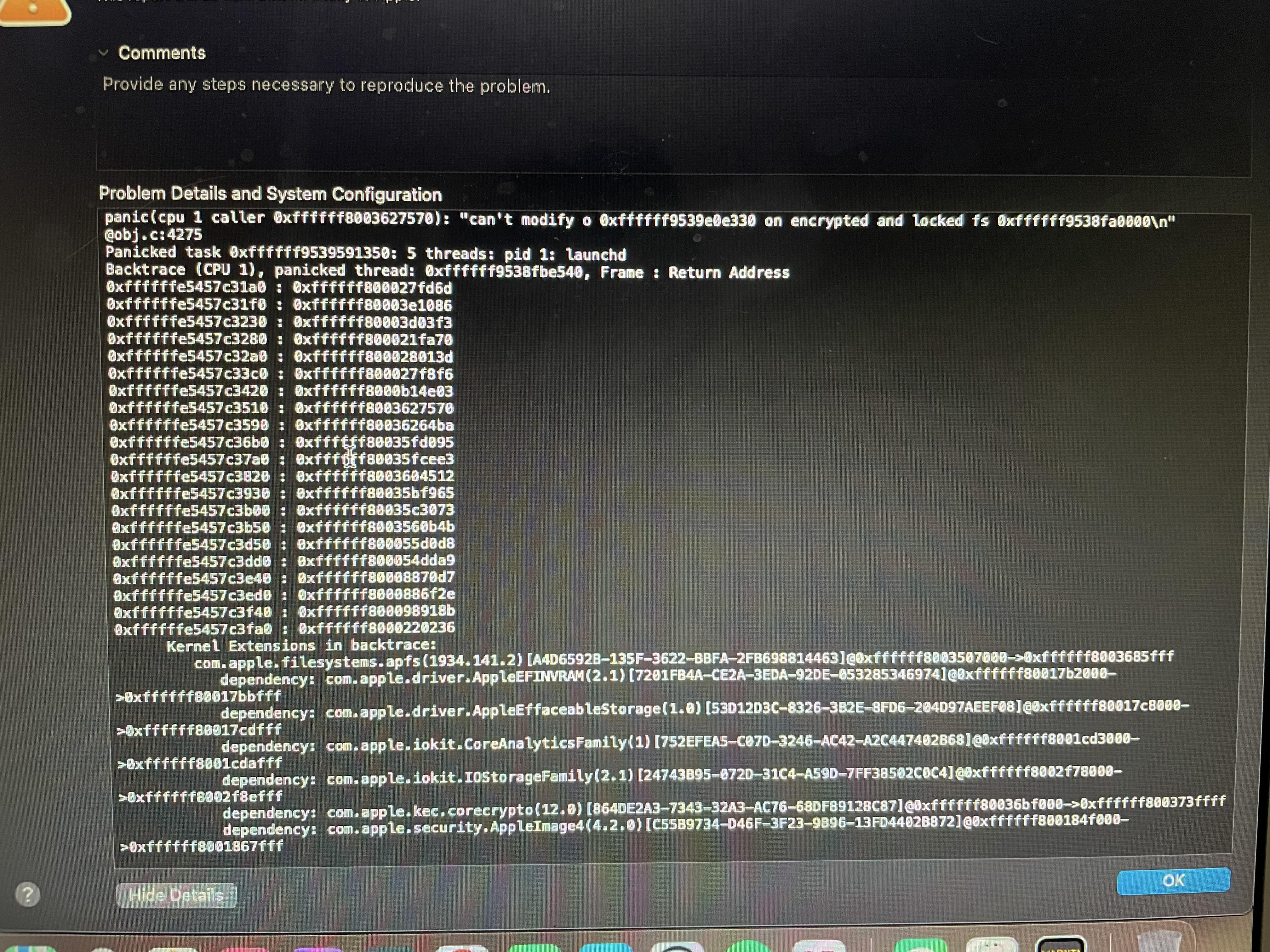 I attempted to turn off FileVault the other day, let it run, and now that it has neared the end, it says I need to plug in my Mac to continue. But, whenever I plug it in my whole system crashes. I've attached my panic code I don't know what any of it means. The computer works fine if it's not plugged in, but the files are still being decrypted so I can really download anything. What can I do here?