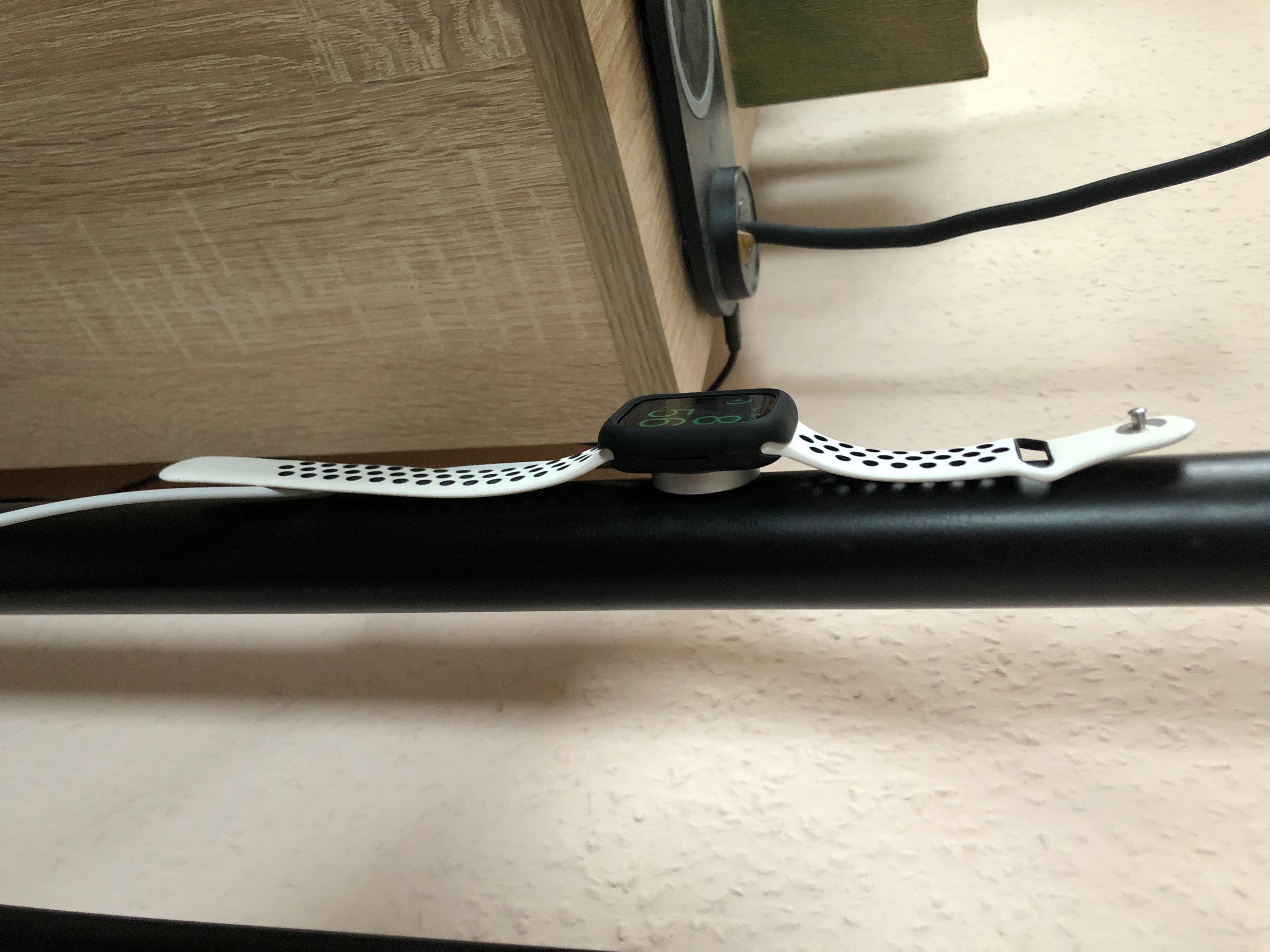 Upon reviewing Check your battery and charge your Apple Watch, we see no mention of charging your watch while it's set up in the position from your photo, but we do want to set some proper expectations.