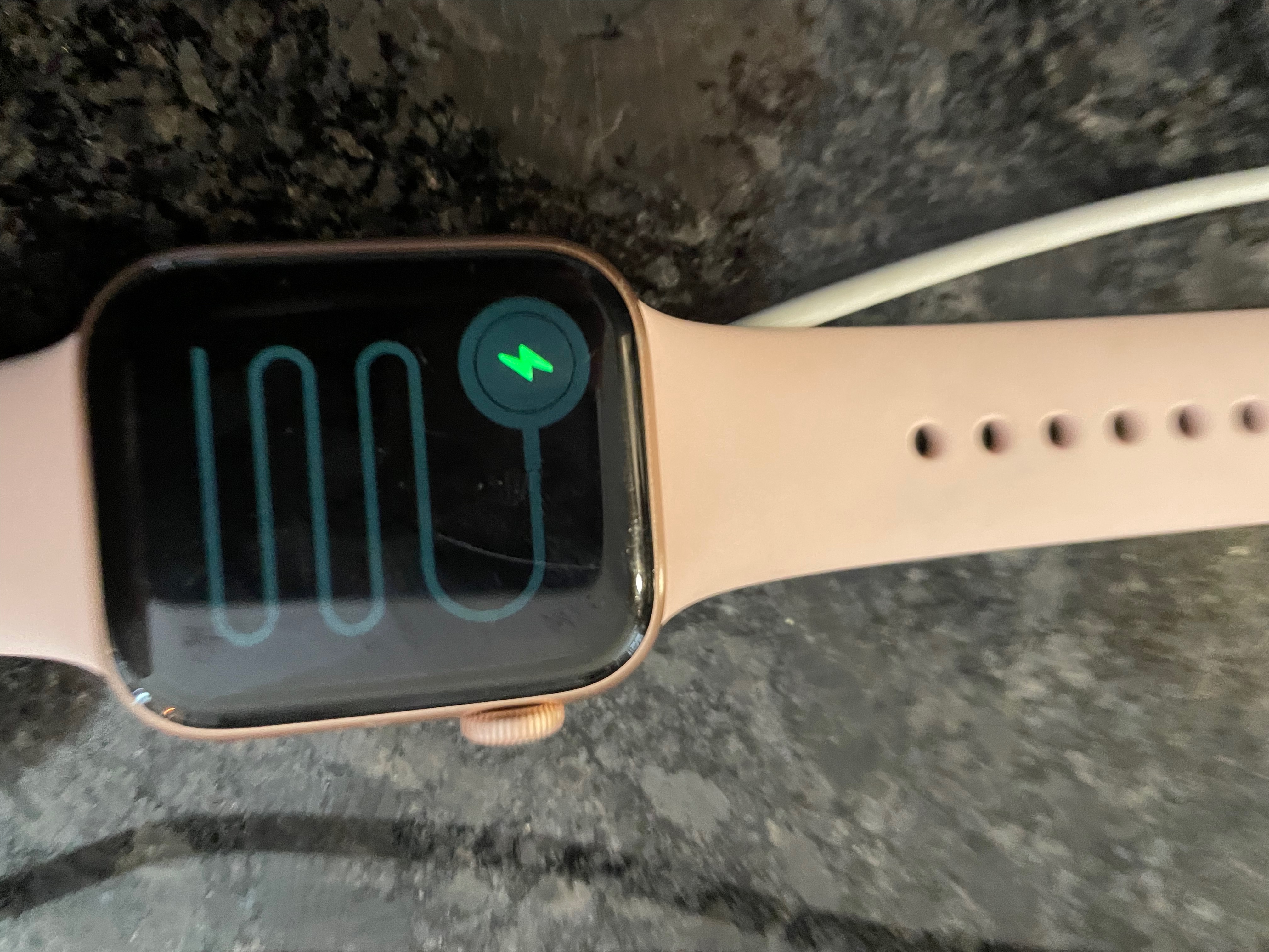My watch won’t turn it’s been on the charger for two days I’ve tried there power restart pushing crown and the power button or 30 seconds and it still won’t turn on . When it’s on the charger an icon comes up that I’ve not seen before it’s like a green charging belt but with a line that goes across the screen