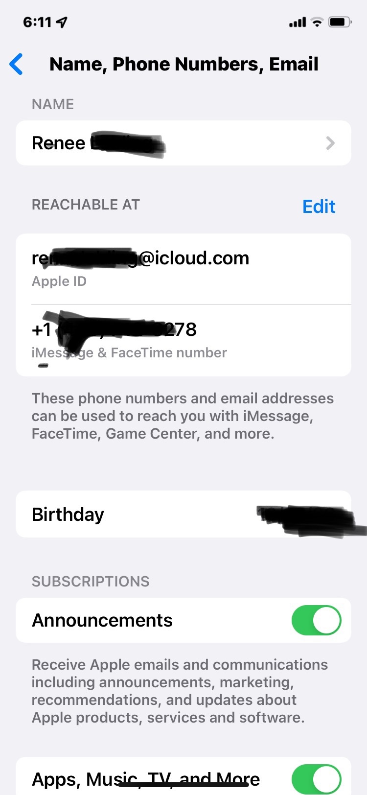So I am updating my moms apps for her on her phone as she is older and doesn’t quiet get technology yet and I enter her password correctly and a couple seconds later it goes through the normal two factor authentication with her accounts trusted phone number . The only problem is that the number it is showing (well last 2 numbers) is completely different than the one from her account . I logged out of the icloud account on the app store first and tried again . Same thing . I checked her settings and made sure her number wasn’t somehow changed and it was the number it should be. I then logged out of her icloud on her settings and relogged in . Same thing again . I even logged into my own person icloud on her app store to try to update them and still ! Her phone is updated completely and I can’t find any help online ;( The trust phone number screen is what i see when I put the password in after clicking update in the app store . One Screenshot is from her profile in the app store showing it matches with the settings profile being the same name but a different number for both . How do I fix this ?