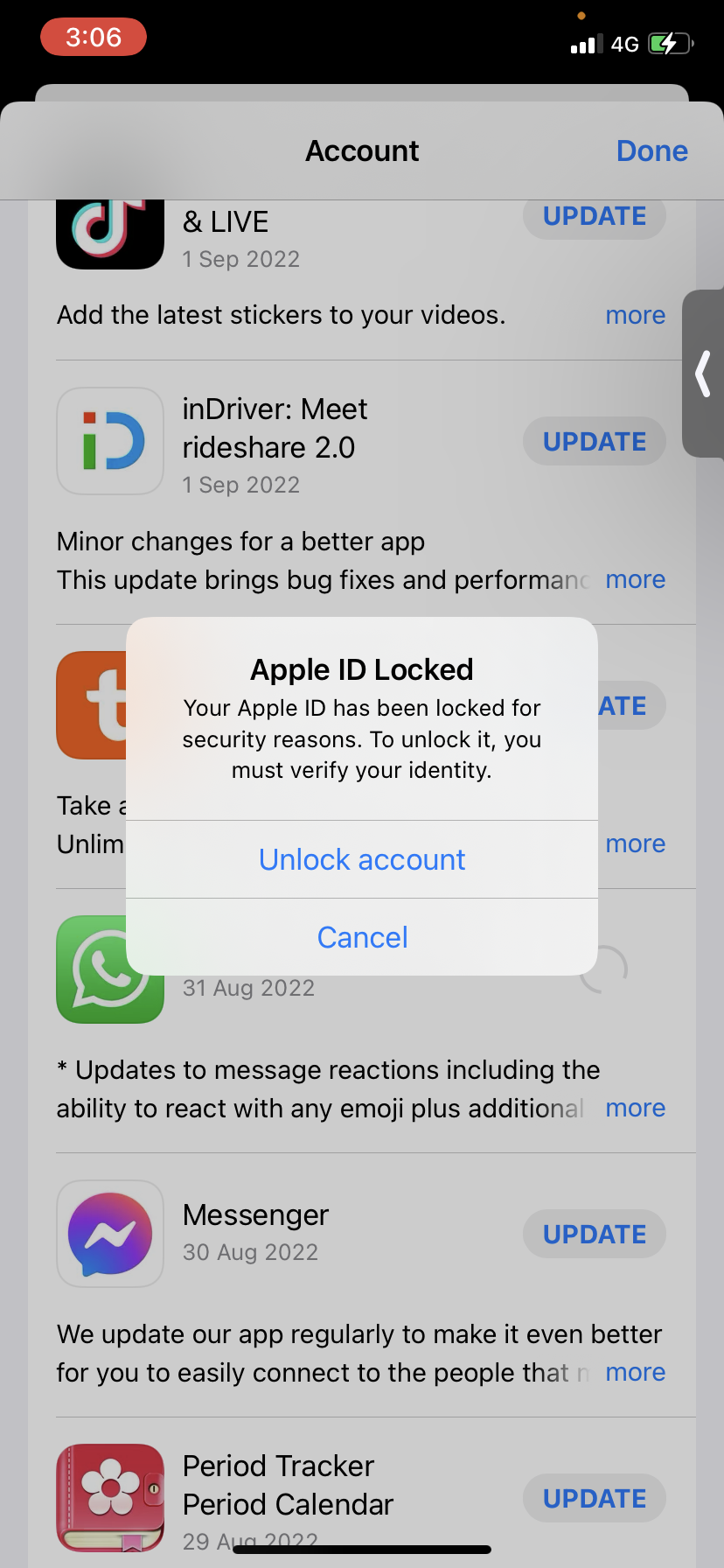 I try to update apps on App Store he ask me for the old Apple ID that I locked and replace it with other one already and when I wrote the password for my recent Apple ID he tell me that my Apple ID locked! And informed that not happening when I download any apps it happened only when I update apps