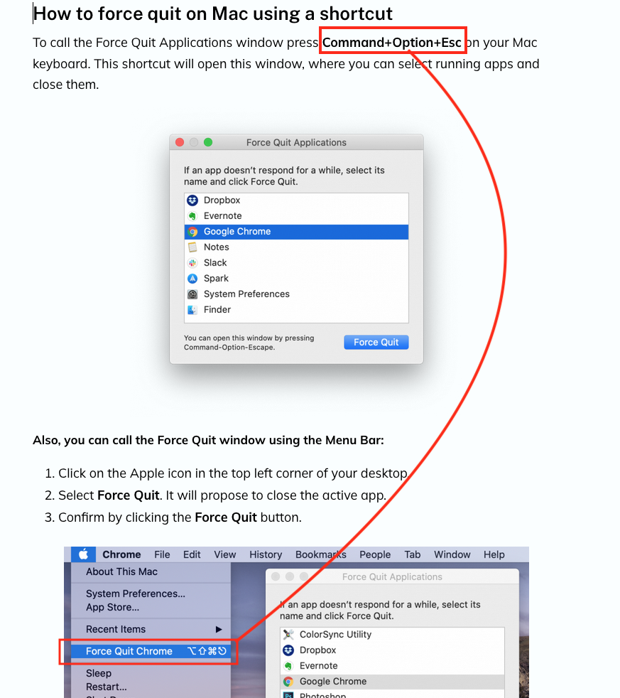 I have the same problem as a 2012 Post: "force quit command option esc does not work in snow leopard/High Sierra"